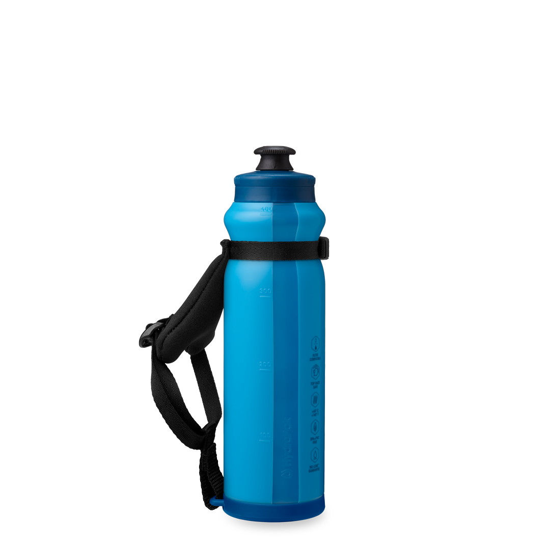 Our Tempo Pro handheld sits securely in your hand. The unique sandal-cut strap design rides comfortably, allows for more airflow, minimizes irritation, and wraps around your wrist to do the gripping for you. The Tempo Bottle is ergonomic for easy squeezing, slimmed down for a comfortable hold, and leakproof. Easily remove the strap for cleaning in the dishwasher.