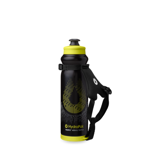 Clip the strap to your Tempo Bottle, pop on the bottom ring attachment, then pull the webbing straps to dial in the fit — left hand or right — for comfort on the move.