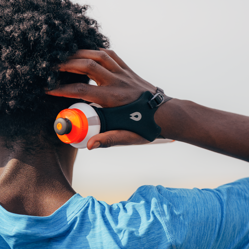 Our Tempo Pro handheld sits securely in your hand. The unique sandal-cut strap design rides comfortably, allows for more airflow, minimizes irritation, and wraps around your wrist to do the gripping for you. The Tempo Bottle is ergonomic for easy squeezing, slimmed down for a comfortable hold, and leakproof. Easily remove the strap for cleaning in the dishwasher.
